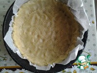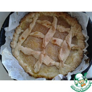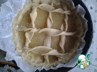 Из оставшейся части теста рассказываем полосы и выкладываем на пирог. Отправляем выпекаться в разогретую духовку на 40-60 минут. |