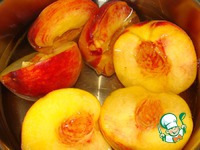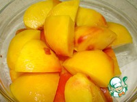 Достать готовые персики, снять с персиков кожуру, порезать на кусочки. |