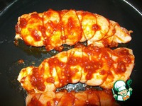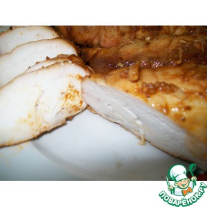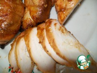 Вот такая аппетитненькая получилась. Оставшийся на мясе саламур снимаю ложечкой и подаю отдельно - для любителей поострее. |