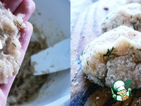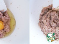 Курятину перемолоть вместе с луковицей в мясорубке. Добавить в фарш яйцо, часть сушёного укропа и соль по вкусу-все перемешать до однородности. |