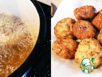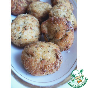 Оливковое масло разогреть в кастрюле обжаривать куриные крокеты до золотистого цвета, непрерывно переворачивая их столовой ложкой, что бы шарики не пригорели. Обсушить крокеты на бумажном полотенце. |