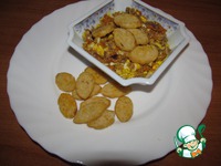 Смешиваем все ингредиенты (майонез добавлять не нужно, хватает масла с консервов) и все. Посыпаем сухариками перед подачей салата на стол. Приятного аппетита!!! |