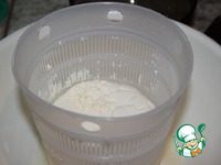 Аккуратно отбросить содержимое в дуршлаг, покрытый редкой тканью, я использую силиконовую форму, очень удобно. |