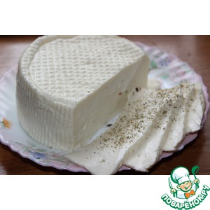Через 20-30 минут молоко будет густое как желе Ножом сделать надрез в этом желе, сразу выступит желтая прозрачная сыворотка. Порезать на кубики где-то по 4х4см |