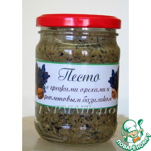 Описание: Песто- итальянский соус из базилика, оливкового масла и сыра. Можно экспериментировать, добавляя разные орехи или зелень.