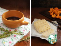 В миску с мёдом положить розмариновые веточки, подогреть, отставить настояться. Сыр порезать ломтями, абрикосы - дольками. |