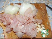 Курицу порезать маленькими полосками, лук полукольцами, чеснок порезать поменьше. Все обжарить до корочки, посолить и поперчить и добавить сметану. Потушить минут 5. Курица готова. |