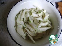 Груши нарезать тонкими пластинками. Смешать с сахаром и крахмалом. (Со сливами получается тоже очень вкусно). |
