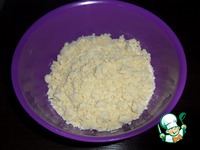 Масло натереть на крупной терке, добавить муку с содой и сахарной пудрой и перетереть в крошку. |