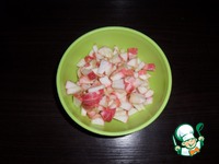 Пока тесто в холодильнике, делаем начинку. Режем не очень мелко яблоки. |