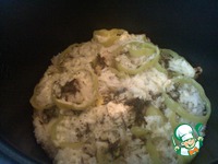 Мультиварку установить на режим "Жарка". Обжарить кабачок с 2 ст. л. соевого соуса и половиной чеснока - 10 минут. |