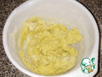 В миске смешать 100 г размягченного масла, сахарную пудру и 1 яйцо. Размешать вилкой и постепенно добавить муку. |