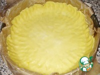 Тесто наколоть вилкой в нескольких местах, иначе будет подниматься. Выпекать основу при 200 градусах в разогретой духовке 25-30 минут. Вынуть и поставить остывать. |