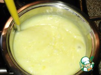 В кастрюльке смешать 2 яйца, 160 г сливочного масла, стакан сахара и 2 ст. л. муки. Влить молоко и поставить на огонь. Варить 5-7 минут до загустения, непрерывно помешивая. |
