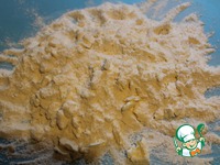 Просеиваю муку, добавляю сахар, щепотку соли и кусочки охлажденного сливочного масла. Тщательно перетираю все до крошки. |