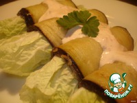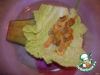 На каждый "язычок" кладем капустный лист, на лист ст.л. грибов.