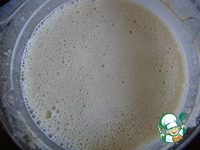 Яйца взбить с оставшимся сахаром, не переставая взбивать влить молоко. Ввести аккуратно муку и вымешать до однородности. |