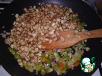 На сковороде разогреть растительное масло, добавить лук и чеснок, жарить до мягкости. |