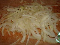 Лук режим полукольцами. На сковороде разогреваем растительное масло и обжариваем лук 5 - 8 минут до золотистого цвета. |