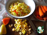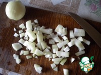 Лук - кубиками (чуть крупнее, чем на зажарку в суп). |