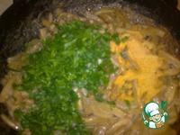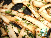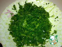 Пока жарятся кальмары, помыть и нарезать петрушку. |