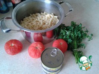 В вермишель выкладываем 2 банки тунца в масле, порезанные помидоры и петрушку, всё перемешиваем. Доправляем солью и специями по вкусу. Сразу едим, пока тёплое. Для меня блюдо вкусное именно пока оно тёплое. Холодное не очень мне нравится. Тунец должен быть именно в масле. В собственном соку мне не нравится, слишком сухое получается.
