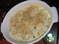 Готовим соус - все стандартно - растираем мягкое сливочное масло с мукой в равных пропорциях (50гр и 50 гр), обжариваем, вливаем тонкой струйкой теплое молоко, постоянно помешиваем, увариваем совсем немного, нам густой не нужен. Соуса нужно приличное кол-во. Если густой, доливаем молоко или отвар от нашей капусты, или от вареников. Приправляем мускатным орехом, солью и перцем. В готовый соус добавляем мягкий сыр, размешиваем очень интенсивно, соус в идеале должен получиться гладкий, без комков. |