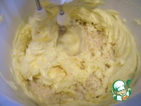 Сливочное масло взбить с 200 г. сахара (белый+коричневый) несколько минут до пышности, затем добавить яйцо и внутренность стручка ванили и взбить еще полминуты. |