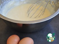 Добавить два маленьких яйца или 1 яйцо и 1 желток. Взбить. |