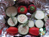 Разогрейте духовку до 180 С градусов. Овощи промойте, обсушите на бумажном полотенце, заверните в фольгу. Уберите в духовку на 1 час. |