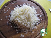 Большую часть сыра натрите на терке и добавьте к овощам. Оставшийся сыр натрите крупными "лепестками" на специальной терке либо настругайте с помощью ножа для чистки овощей. |