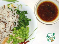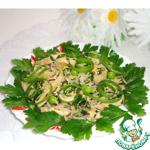 Описание: Вкусный необычный, нарядный салат из курицы с рисом Басмати MIX, зеленым горошком, с пикантной ноткой.