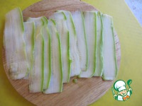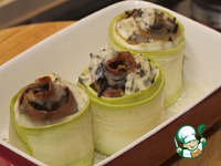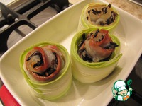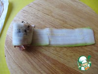 Завернуть "розочку" в ленты кабачка, я заворачивала в 3 штуки, соединяя предыдущую ленту с последующей внахлест. |