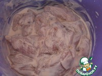 Солим, перчим, добавляем пару капель соевого соуса (можно и без него), ложку сметаны, перемешиваем и оставляем в холодильнике минимум на 15 минут. |
