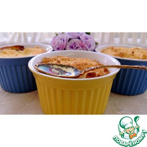 Описание: "Крамбл - британский десерт, который готовится из ягод или фруктов. Фрукты смешиваются с сахаром, сверху выкладывается крошка из теста, затем все запекается в духовке. Получаются ароматные фрукты с хрустящей-карамельной корочкой." Попробуйте!