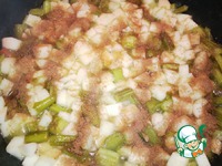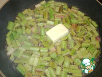 Добавляем ревень и масло. |