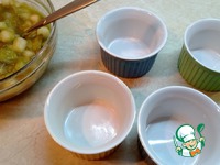 Смазываем формочки сливочным маслом. И выкладываем нашу начинку. |