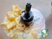 В комбайне или блендере смешать муку, сливочное холодное масло и сахарную пудру. |