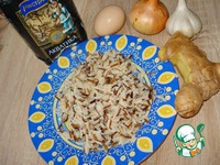 На тарелку выложить рис, сверху яйцо, и посыпать хрустящим имбирем с чесноком. |