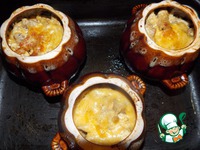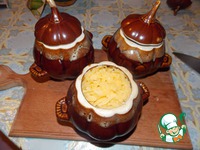 Затем формируем блюдо для дальнейшего приготовления.. Берем горшочек (у меня небольшие горшочки, в таких еще жульены делают) кладем на дно горшочка чайную ложку сливочного масла. |