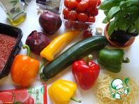 Выкладываем помидоры и нарезанные овощи в жаропрочную форму или противень с бортиками. Окропляем оливковым маслом, солим, перчим. |
