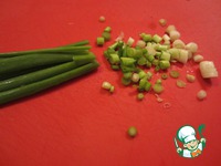 Полученную смесь выльем в миску с рисом и зеленью. |