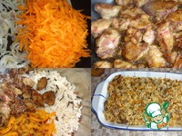 Когда лук с морковью будут готовы, положить их в чашку с отварным рисом.