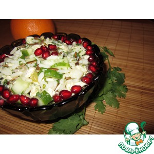 Описание: Нашла в просторах интернета рецепт этого салата, сам по себе он очень прост, но, что меня заинтересовало в нем, - это его заправка. Необыкновенный аромат и вкус, я почти влюбилась в заправку =) Очень советую, если вы любите поэкспериментировать!