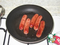 Сосиски проколоть вилкой в нескольких местах и обжарить со всех сторон на подсолнечном масле. |