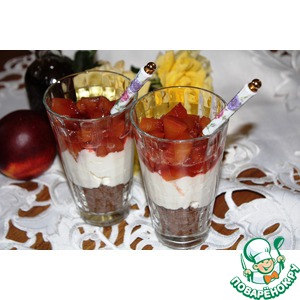 Выкладываю крем в стаканы на слой печенья, а сверху - фруктовую массу. Десерт готов, но прежде чем подать, его необходимо охладить, часа в холодильнике будет достаточно. |