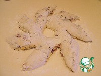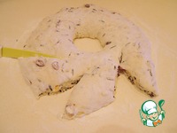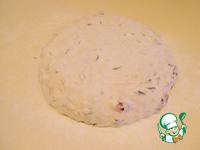 Подошедшее тесто выкладываем на рабочую поверхность (лучше сразу делать формовку на смазанной бумаге для выпечки, а то я намучилась с переносом заготовки). Формируем шар, придавливаем его. |