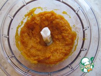 С каждого кусочка тыквы снять мякоть без кожуры и пюрировать блендером. |