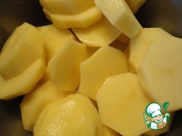 А тем временем подготавливаем картофель. Чистим, режем пластинами толщиной около 7 мм. |