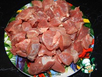 Отделите от мякоти кости и жилы и вымойте мясо. Вымытое и очищенное мясо нарезать на ломтики среднего размера. |